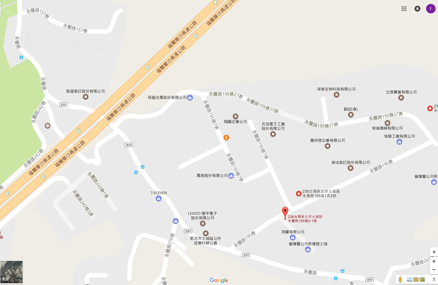 2.進入永豐路,通過高速公路涵洞,再通過7-11超商,前進50公尺左轉進入195巷,右前方即為大順工業城,2-7號門口可停車。