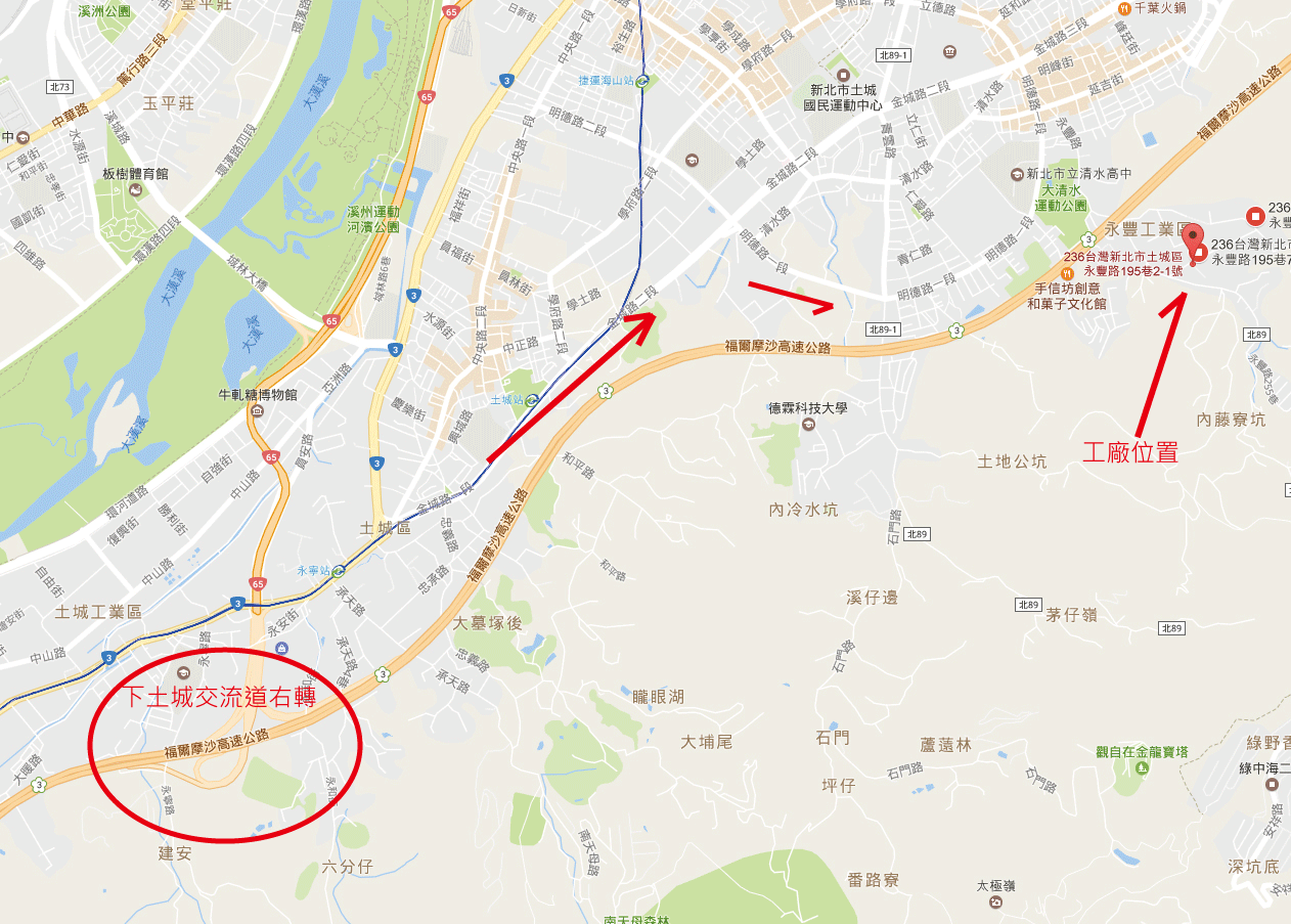 1.下北二高土城交流道右轉。